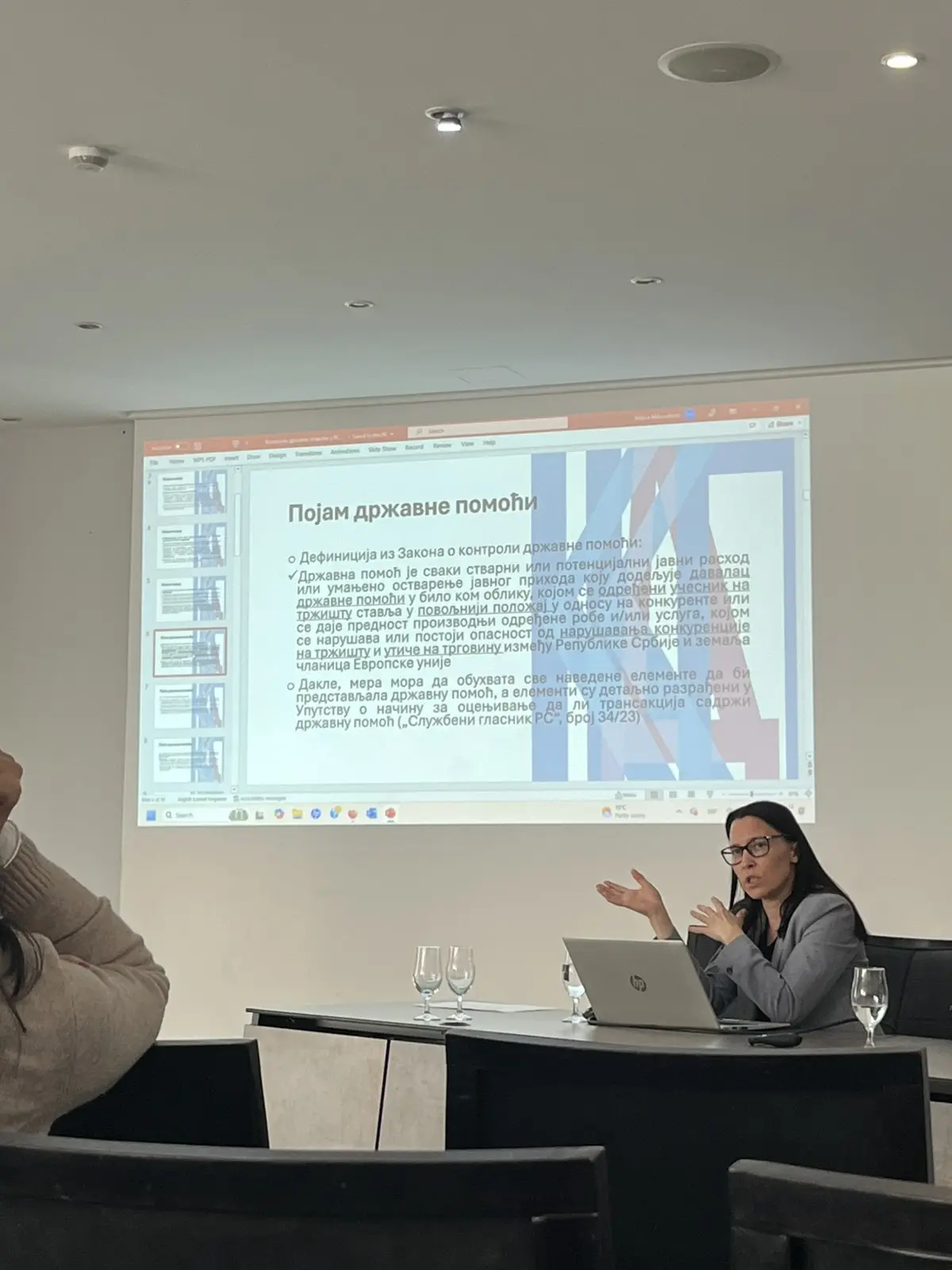 Представница Комисије за контролу државне помоћи Милица Милорадовић одржала је предавање на тему „Контрола државне помоћи у Републици Србији“, у оквиру Јесењег саветовања – „Новине у правно-економском пословању јавног сектора“, које је одржано у периоду 26-29. октобра 2025. године, на Златибору у организацији „Семинара Србије“.